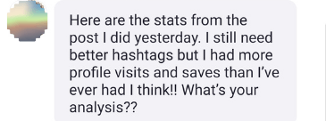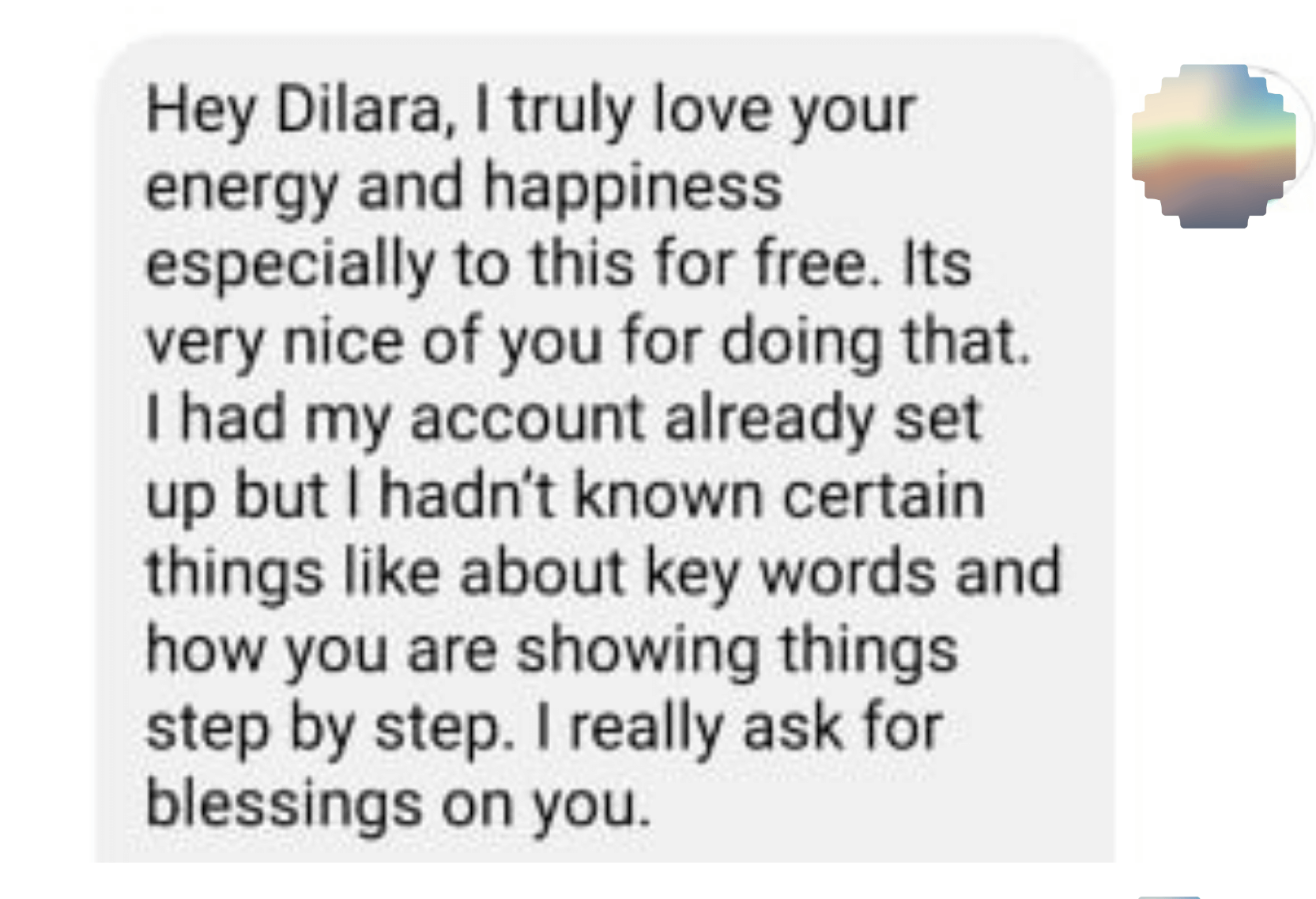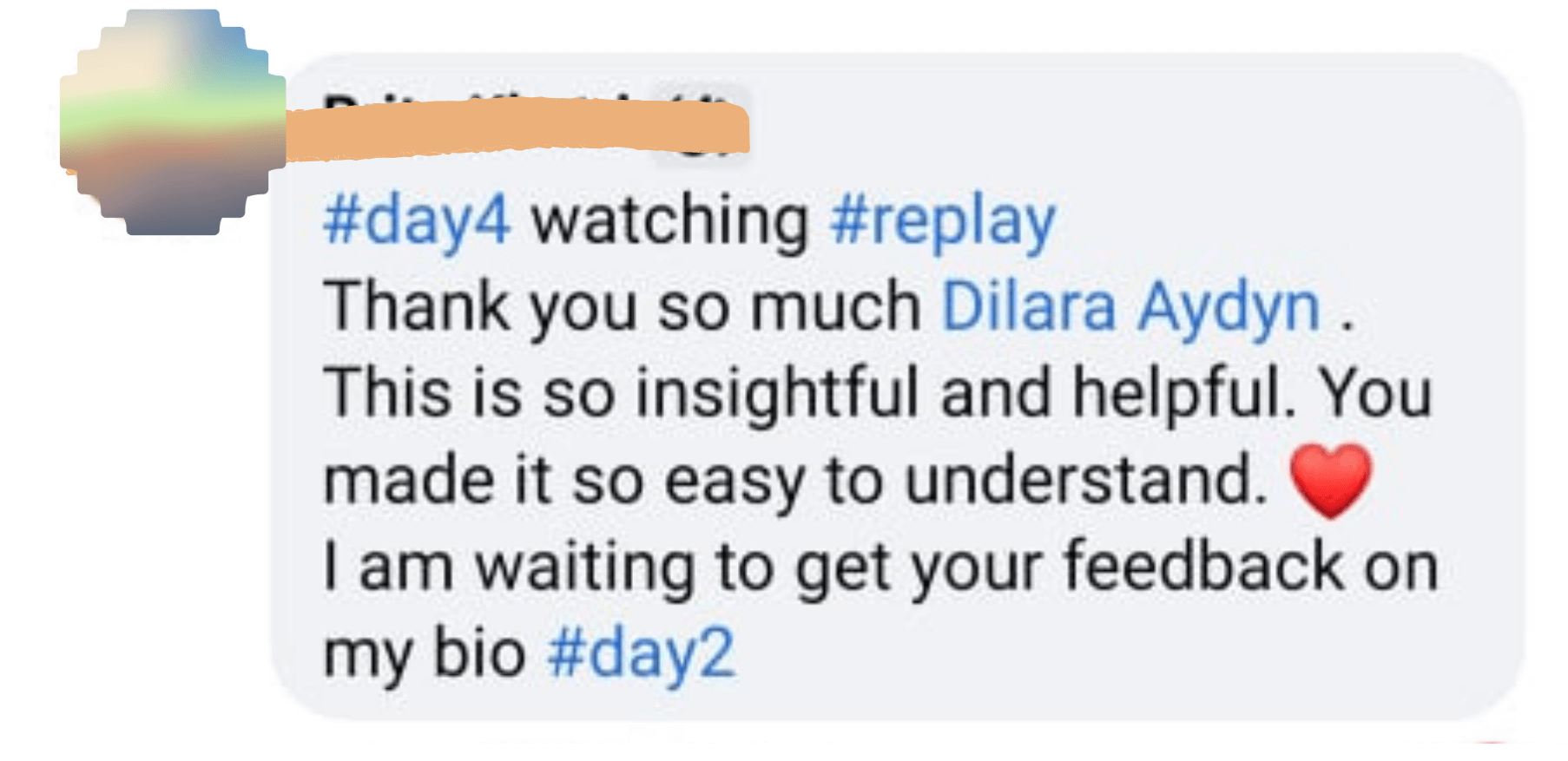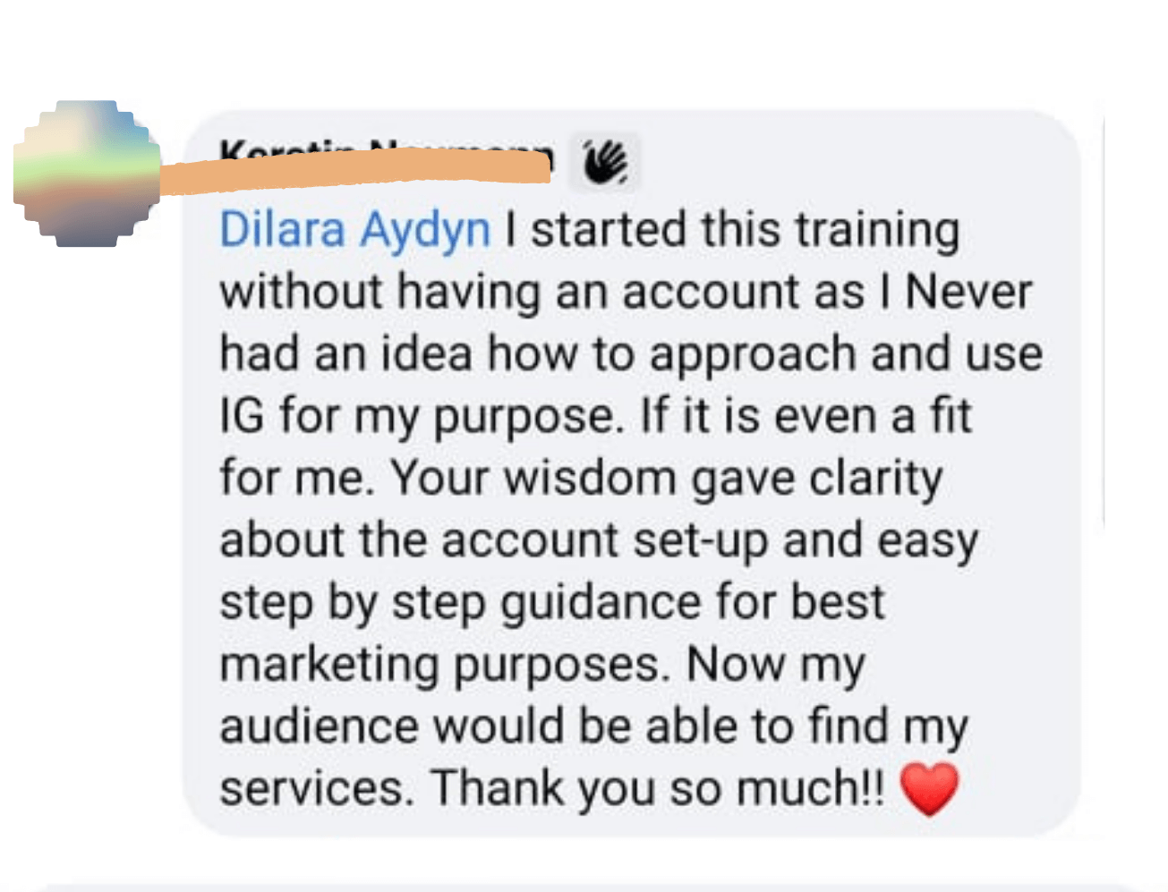 "My IG account is growing now with prospects reaching out to me with DM`s. Thank you Dilara." Maja Krizan, Budgeting Coach