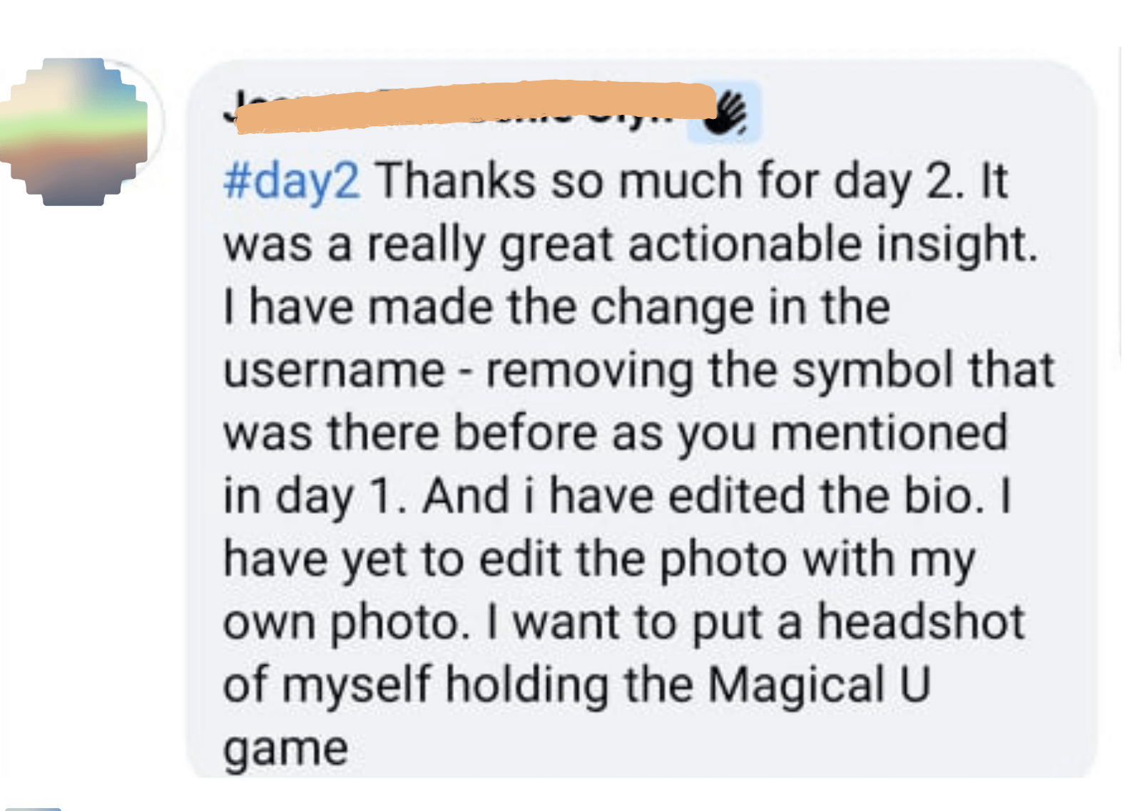 “I couldn’t wait for the next day’s lesson. She helps you put things into motion, so that you are not just doing nothing with your amazing account. Such a powerful experience” Sharon Keathley, Nursepreneur